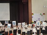 桜台小学校の役割は、はじめの言葉です。一文字一文字工夫して色塗りしたカードに書かれた文字を、大きな声で言いながら頭の上に掲げます。何度も練習してきました。本番はきっと緊張したと思いますが、練習どおり堂々と言うことができ、会場から拍手が起こりました。がんばりました。