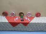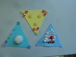アイデアは次々と出てきます。皆で考えたことを基に、商品を作ってみました。初めとは違う、美しく工夫いっぱいの作品になりました。思わず、「写真に撮っていい?」と言うと「これ、私の。」「これ、ぼくの。」と自慢げに教えてくれました。