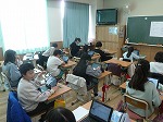 このところ、週に2学級ずつ、授業研修会を行っています。今日はかがやき学級でした。今度行う「かがやきショップ」をよりよいものにするため、ガーランドという壁掛けの商品について話し合いました。