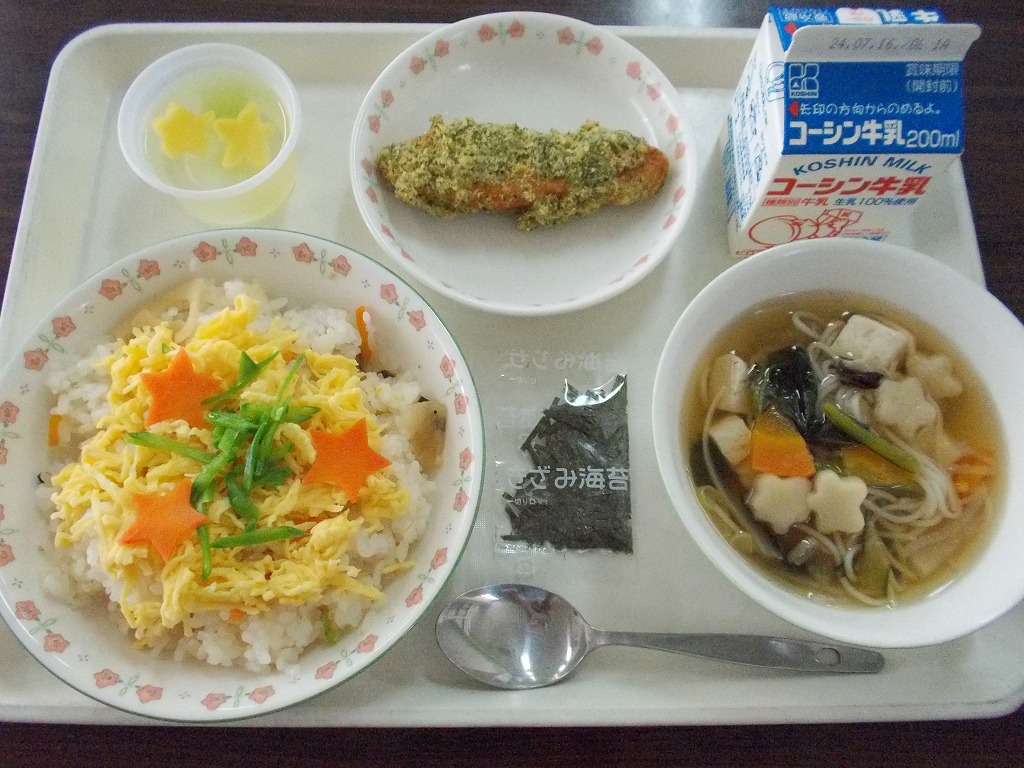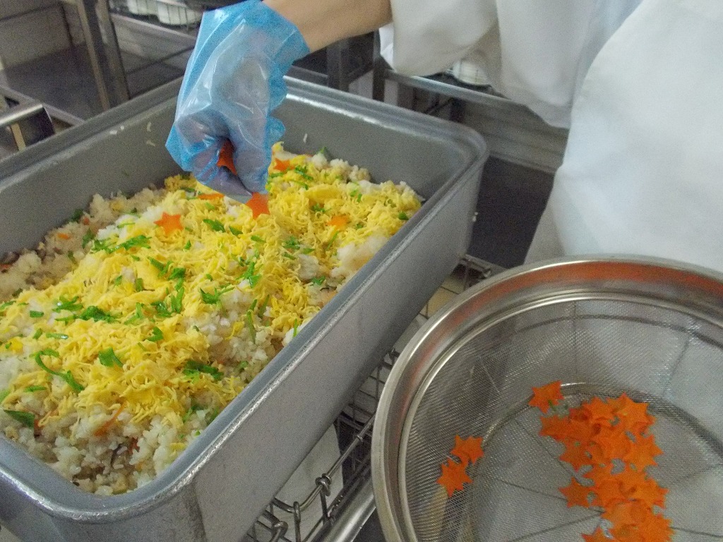 「七夕ちらし」には、子どもたちも食べやすいように、酢飯の合わせ酢の酸味を控え作っています。