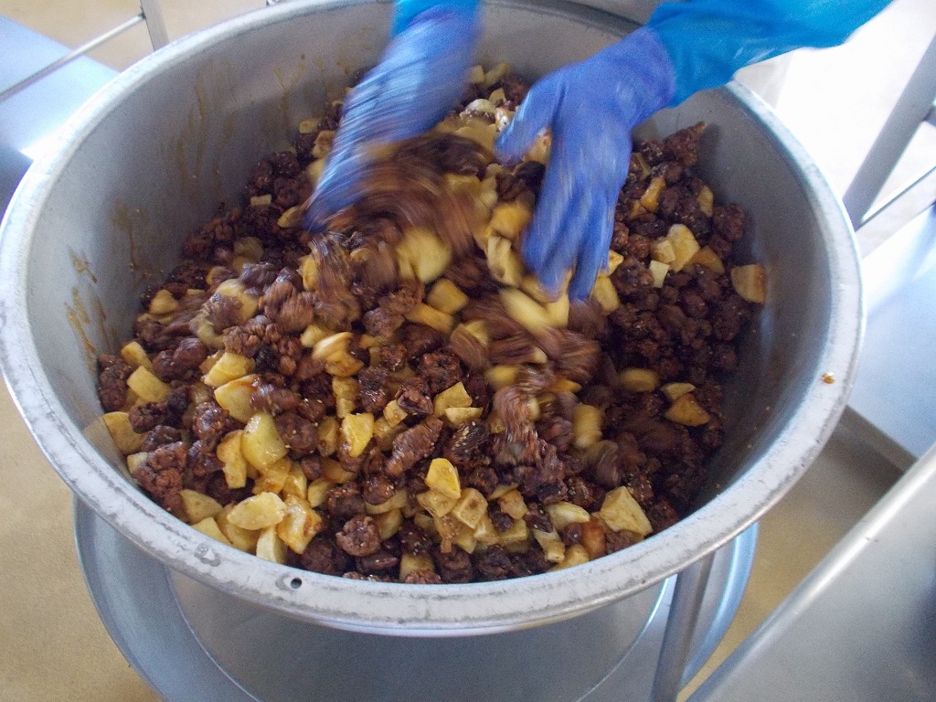 今日の国は、我ら”日本”です。二品は、昔より季節にまつわる行事を大切にしてきた国です。9月では、火曜に行った「お月見」のほか、本日より始まる「お彼岸」もあります。今日は、そのお彼岸をイメージした献立です。昔の人は、山の神に農作物の収穫に感謝し、「おはぎ」をお供えする風習がありました。その「おはぎ」を手作りしました。あんこを朝から作り、1つ1つ丁寧に愛情こめて作り上げた「おはぎ」は、あんこが苦手だと言っていた子どもたちも「食べてみたらおいしかった」と、たくさん食べてくれました。そして、農作物に感謝する日でもあるので、お米や野菜、きのこや豆などの農作物だけを使った本日の給食です。