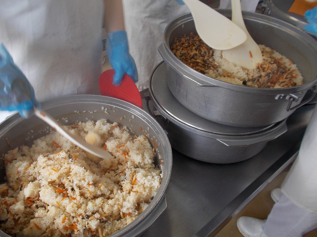 最初のスタートを切るのは、恒例になった「ぐりとぐらのカステラ」です。ぐりとぐらのカステラを再現するため一生懸命作ってくれました。ほっこりとした優しい味のカステラです。さらに、給食の時間に流れる校内放送では、図書の先生の読み聞かせもあります。ぐりとぐらの絵本を聞きながら、絵本の中に出てくるカステラを実際に食べる事ができる贅沢な時間です。味わっていただきましょう。