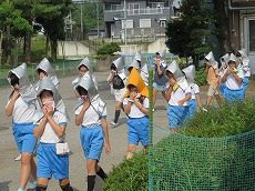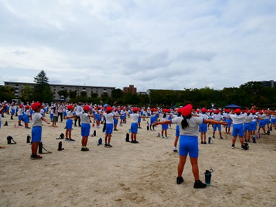 運動会の全体練習がありました。今日は応援合戦の練習です。