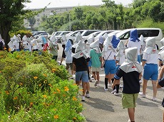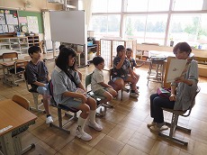 運動会のリレー選手選考も兼ねたタイム測定が始まっています。このタイム測定で、運動会のときの紅白も決まります。暑い日が続いているので、木陰で休憩をとりながら進めていました。