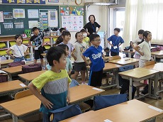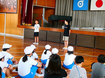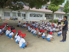 校長先生からは、8月20日に行われたスクールサミットのことについて紹介がありました。また、元気なあいさつをして、笑顔あふれる清水口小学校にしましょう、9月からは掃除を頑張りましょう、という話がありました。