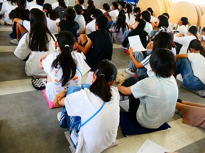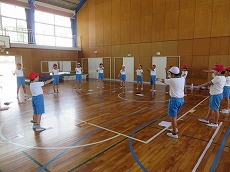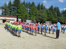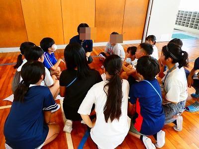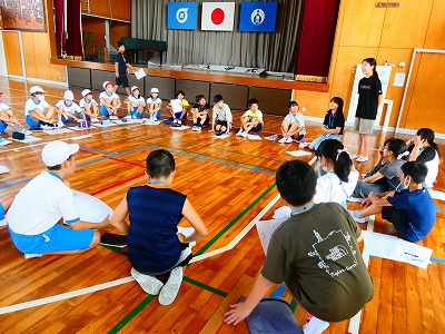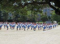 今日は開閉開式の練習をしていました。代表で選ばれた子どもたちが集合しました。涼しい木陰でイメージ練習をし、その後全体の動きを確認しました。