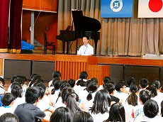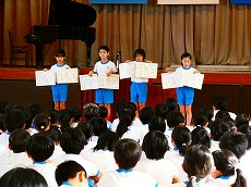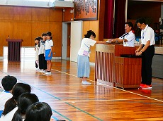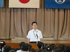 続いて校長先生より、各学年の代表者へ前期の通知表「夢」が手渡されました。その後校長先生からは、「楽をしようとしてやらないか。大変でも努力してやるか。これで人の成長は変わってきます。」という話がありました。