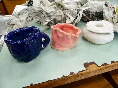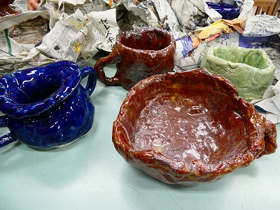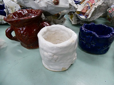 夏休み前におこなった「陶芸教室」で作った作品が戻ってきました。