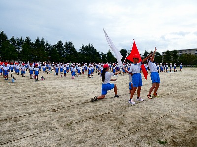 紅白の応援団長からの話では、「こういう運動会にしていきたい!」「皆でこうしていこう!」という思いがよく伝わってきました。互いに意見を言い合い、高め合いながら、よりよい運動会にしていってほしいと思います。
