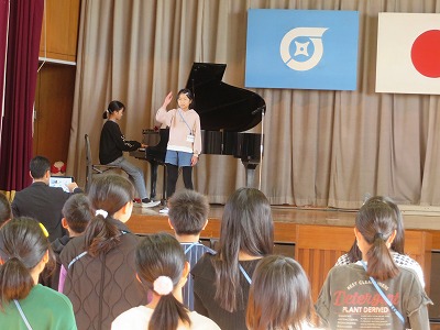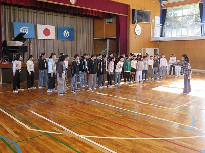 明日は、白井市の音楽発表会があります。参加する有志・精鋭の子どもたちに向け、励ましの言葉がありました。そのあとの歌声は、大変すばらしかったです。言葉がはっきりとしていて、声に伸びがあり、美しい歌声が体育館中に響き渡りました。