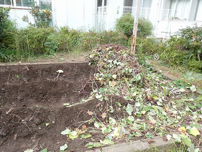 たくさんあった「つる」をとって、くるくる巻き、リースにしていました。立派なリースができそうです。また後日いも掘りをするようです。楽しみですね。