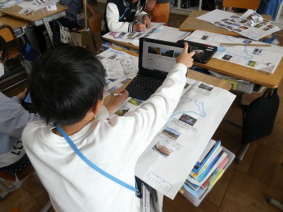「ここ行ったことがある?説明なんて書いた?」「校外学習でさ~・・・」など、グループの友だちと相談しながら進めました。