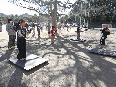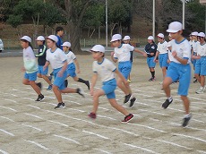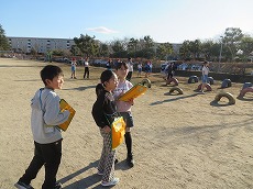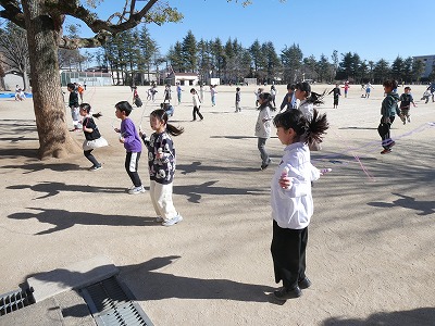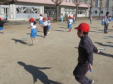 1年生は縄跳びを練習していました。腕と足、体全体のリズムバランスと、手首や肘の力の入れ方や力の抜き方など、この縄跳びで調整力や筋力がつきます。昼休みにも練習する姿がたくさん見られました。