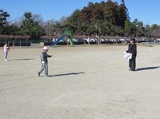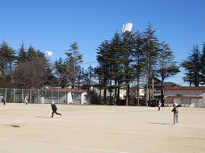 1年生が、6年生の力を借りて凧揚げをしていました。6年生の1年生への面倒見の良さに感心しました。