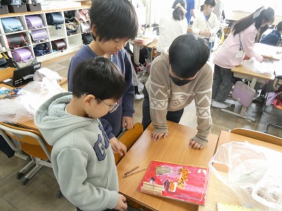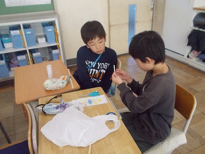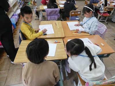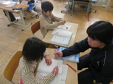 生活科でおもちゃ作りをし、国語科ではその作り方の説明文を書きました。その後たくさん練習をし、いざ1年生の元へ!上手に説明をすることができました。教えてもらっている1年生も楽しそうでした。