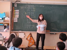 2年生の算数では、かけ算九九の一覧表から、決まりを見いだす学習をしていました。決まりに気づくこと、パターンに気づくことは、6年生までに学習する内容で、これからも重要になってきます。「こうかな?」と思うことを友達と話し合う取り組みも良かったです。