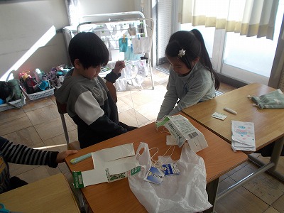 ひまわり学級は、休み時間の様子です。どうやらカマキリの卵を見つけてきて、これから孵させようとしているみたいです。