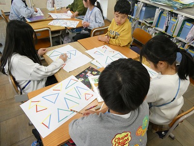 ひまわり学級は、それぞれの課題に取り組んでいました。算数科の学習でいろいろな三角形を作ったり、調べ学習をしたりしていました。丁寧に指導が行われていました。