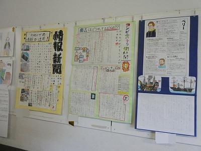 先日行われた「部会社会科作品展」に出品した作品を1階中央廊下に展示してあります。新聞やリーフレットなど、学年に応じて様々な作品が見られました。さすが各学級の代表作品!見やすくて分かりやすい、素晴らしい作品揃いです。