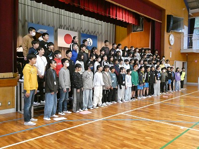 その後、在校生からメッセージ付きの歌のプレゼントがあり、そして、6年生からお礼の歌がありました。全てが終わると、会場は静寂に包まれ、余韻のあるとても良い雰囲気が残りました。