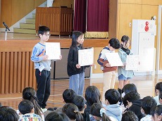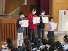 本校でも、チアリーディング、テコンドー、陸上競技で4名の児童が表彰されました。
