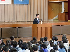 生徒指導主任からは、「交通事故等に合わないように気をつけましょう。」「生活リズムを整えましょう。」「勉強の復習をして安心して進級できるようにしましょう。」「友達と仲良く過ごしましょう。」という話がありました。