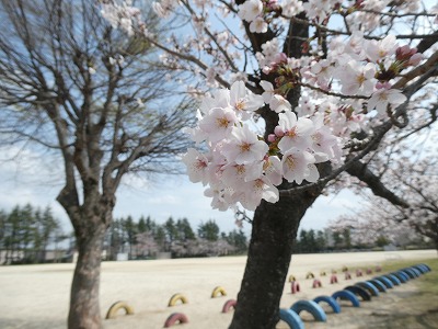 4月1日はあいにくの雨でしたが、今日は気持ちの良い天気となりました。校庭の桜もきれいに花を咲かせています。