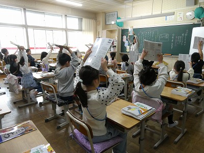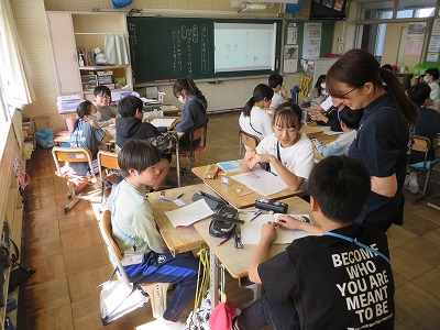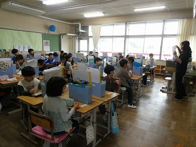 清水口小では、1年生から6年生まで、どの学年もグループ隊形で学習に取り組んでいます。