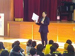 冬休みを迎える会では、校長先生から持久走記録会での頑張りと新年のめあて、自分の命と心を守ること、よい歯の学校に選ばれた話がありました。