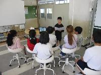 2年生が1年生に対して、町たんけんで体験したことやわかったことなどについてまとめたことを発表していました。