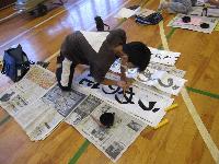 3年生から6年生が体育館にて校内書き初め大会を行いました。