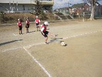 6年担任が早々に得点を入れると、中盤、後半に2年担任が得点を入れ、教員チームが勝利しました。6年生チームも何度か決定的チャンスをつくるものの、ゴールポストをかすめてしまい得点には至りませんでした。