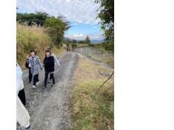 2日目の朝は散歩からスタート。きれいなうろこ雲と青空がみんなを迎えてくれています。
