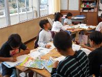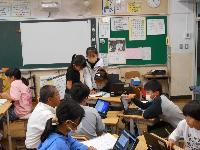 今日の4年生の社会では、君津市の産業について調べていました。3~4人グループをいつも作っているので、分からなければ周りに相談します。そして、みんなで考えながら、新しいことを知ったときは「へーそうなんだ」と自然に言葉が漏れます。