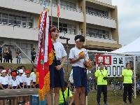 閉会式の練習では、今日は仮に総合優勝 白組、応援賞 紅組、紅白リレー 赤ぼうしチームとしました。