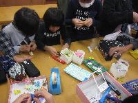 ロング昼休みの時間を利用して、90周年記念行事で使用するプレゼント作成のお手伝いをしてくれました。