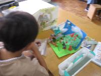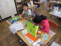 2年生は(はじめて?)カッターを使って“窓のある建物”を制作していました。いろいろな形を切り抜くのに少々手間取っています。