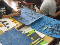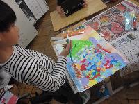 2年生も最後?の仕上げの背景への色塗りをしていました。どんな作品が仕上がるのかとても楽しみです。