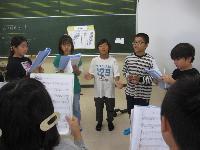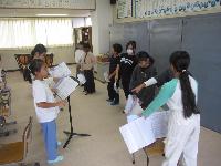 4年生が音楽の時間にパート練習をしていました。リーダーがリズムをとって同じフレーズを何度も練習しています。