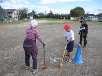 社会福祉協議会の方々にお越しいただき、4年生がグランドゴルフの体験を行いました。