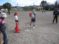 例年行われている活動ですが、初めてやる競技のため、児童たちは最初は上手くボールを打つことが難しいですが、競技を進めるうちに慣れてきて、最後の方は狙ったところへ上手に転がせるようになっていきました。