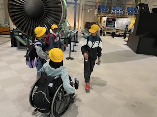 午前中のプログラムに集中して取り組み、少しお疲れモードですが、博物館内の自由行動では、普段見ることができない飛行機の内部や部品を熱心に見学していました。