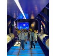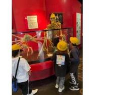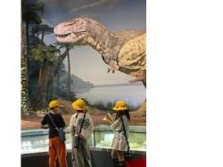 博物館では、恐竜がけんかしていたり、骨がいっぱいでびっくり。魚もたくさんいて、しっかり見学していました。