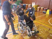 社会福祉協議会の方々に来校していただき、車椅子と高齢者体験を行いました。