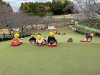 午前中は、芝滑りや動物とのふれあいタイムです。