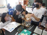 5年生は理科の実験で、ミョウバンと食塩を水に溶かし、溶かしたものを取り出すといった実験をしていました。