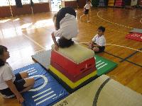 2年生は体育で跳び箱を行っていました。台上前転や抱え込み跳びなどそれぞれの技量に合わせて技の難易度や跳び箱の高さを変えて練習していました。