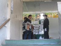 印西警察署の方にご協力をいただき、不審者役となって校舎内に入っていただき、児童が安全な場所に移動したり、教室内でバリケードを設置したりしました。