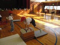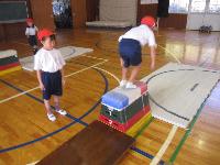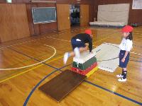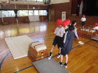 1年生が体育の授業で跳び箱に挑戦していました。