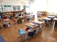 これから、地震が来るという放送が突然流れました。「どうしよう」という表情の子ども達が多かったですが、だれも話をせず、速やかに机の下に隠れる子が多かったです。避難訓練をきちんとやっているおかげで、突然の事態にもきちんと対応できていました。